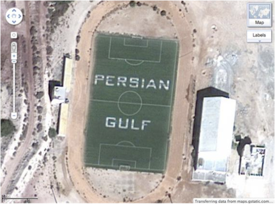 Bahr-e Fars: A clear Iranian message on a football pitch in Abu Musa (source: Google Maps)
